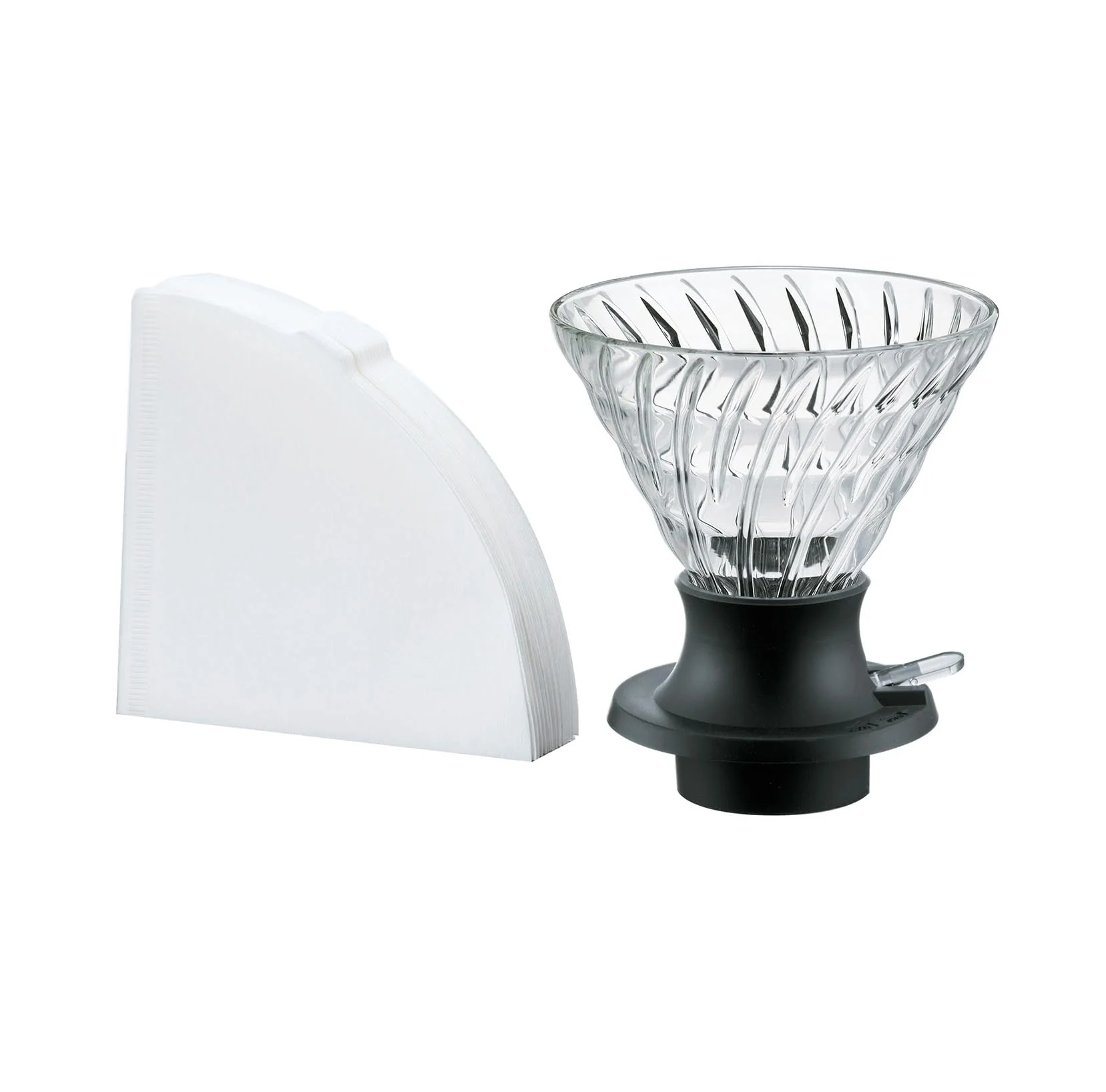 Dripper V60 Switch inmersión 360ml - Hario El V60 Switch de Hario revoluciona tu preparación de café con su innovador sistema de inmersión y goteo. Este dripper de 360ml combina lo mejor de ambas técnicas: comienza con inmersión para extraer cuerpo y complejidad, luego cambia a goteo para claridad y limpieza. Su diseño de espiral única y ángulo de 60° garantiza distribución uniforme del agua y extracción consistente. Fabricado en cerámica de alta calidad, el V60 Switch es ideal para quienes buscan control total y resultados excepcionales en cada taza. Compatible con filtros estándar, es la herramienta perfecta para baristas y entusiastas del café de especialidad.