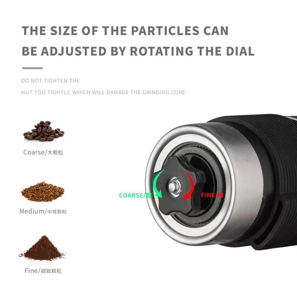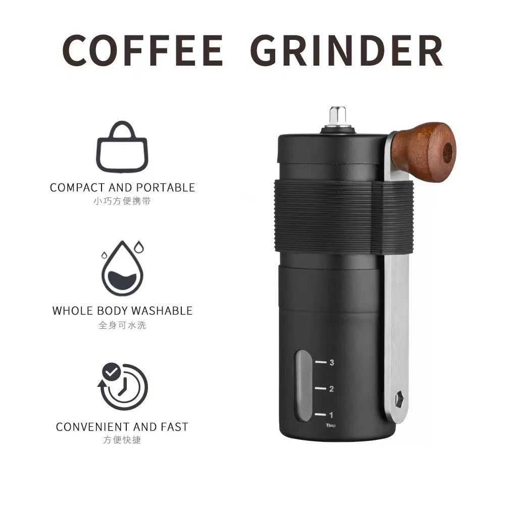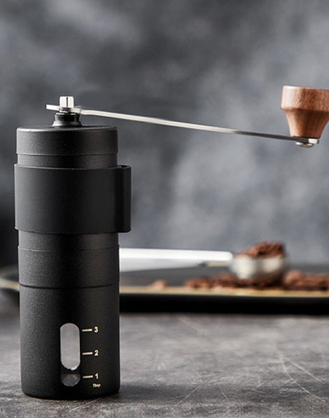 Molino manual compacto fabricado en acero inoxidable con acabado negro elegante. Equipado con muelas cónicas de cerámica gris oscuro que garantizan un molido uniforme y consistente, preservando los aromas y sabores de tus granos de café. Diseño portátil ideal para viajeros y amantes del café que buscan control total sobre la granulometría. Mecanismo de ajuste preciso para obtener desde molidos finos hasta gruesos según tu método de preparación preferido.