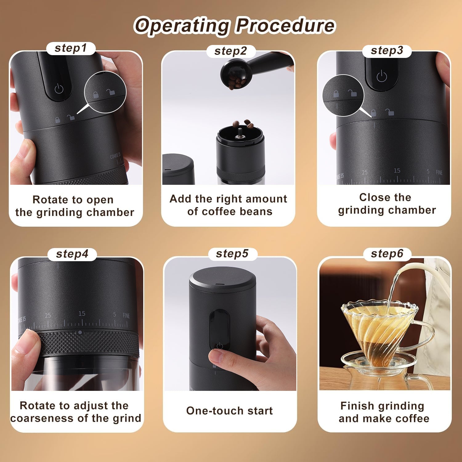Molino eléctrico compacto y versátil diseñado para el aficionado al café que busca molienda fresca en cualquier momento. Con motor de alta velocidad y muelas cónicas de cerámica, garantiza una consistencia uniforme en cada uso. Su tamaño portátil lo hace ideal para viajes, oficina o uso doméstico diario. Batería recargable de larga duración y controles intuitivos permiten ajustar el grosor de molienda según tu método de preparación preferido. Construcción resistente y fácil de limpiar para máxima durabilidad.